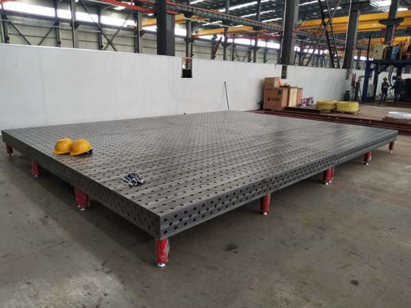 根據(jù)客戶要求,在平臺的兩直角邊上面可以刻畫毫米標度尺臺面采用網(wǎng)格孔形式。平臺尺寸最大可達6000x2200mm,也可以根據(jù)實際需要來定制。它不僅可以作為焊接平臺使用,也可以作為裝配平臺、檢測平臺、機床加工平臺等。